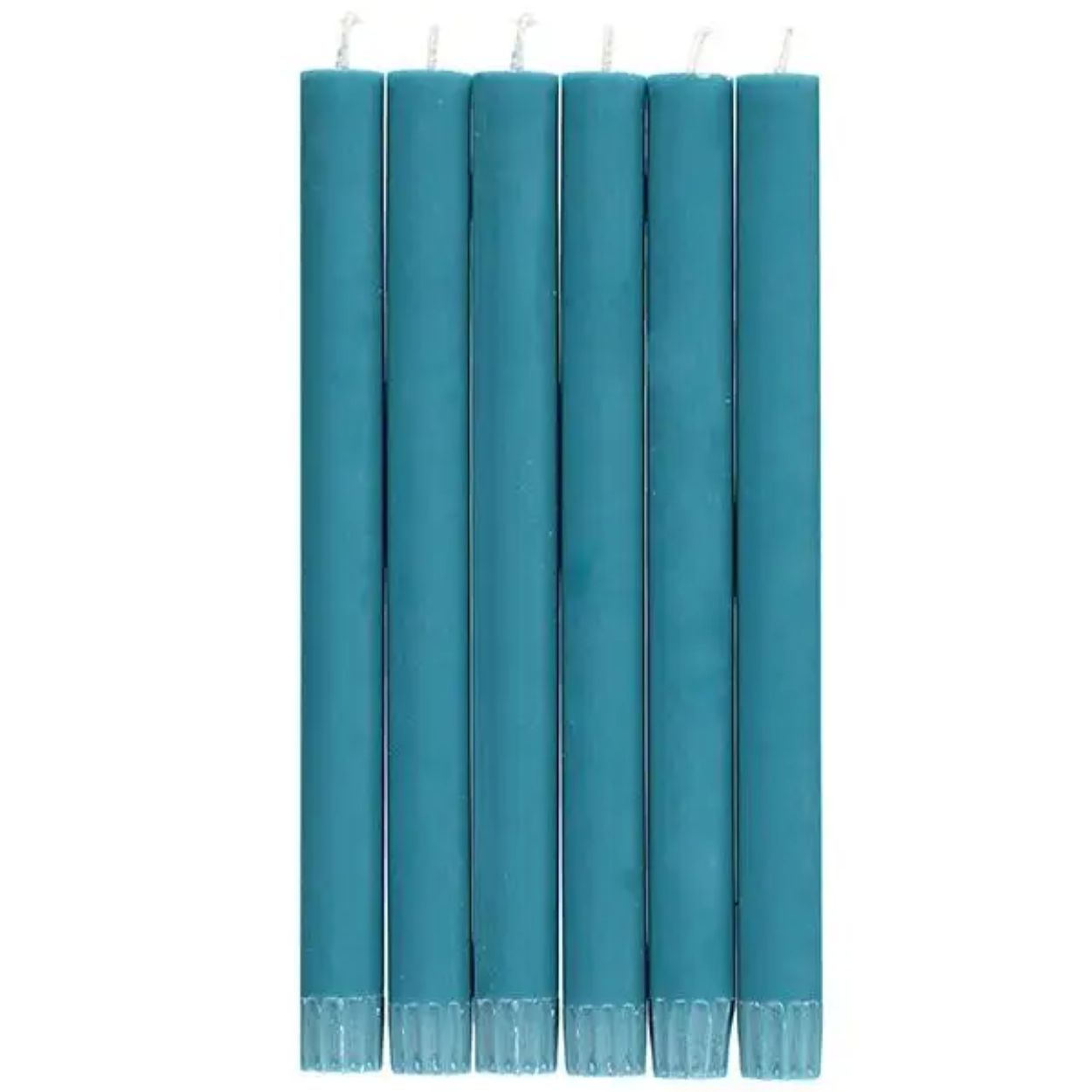 These eco, Fair Trade, hand poured dinner candles are presented in a pack of 6 containing British Colour Standard Petrol Blue. A colour name introduced into seasonal ranges in 1943, standardised owing to many requests for the colour. Perfect for special occasions these unique candles make a wonderful gift.